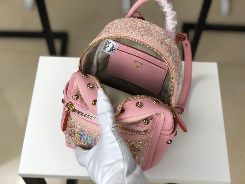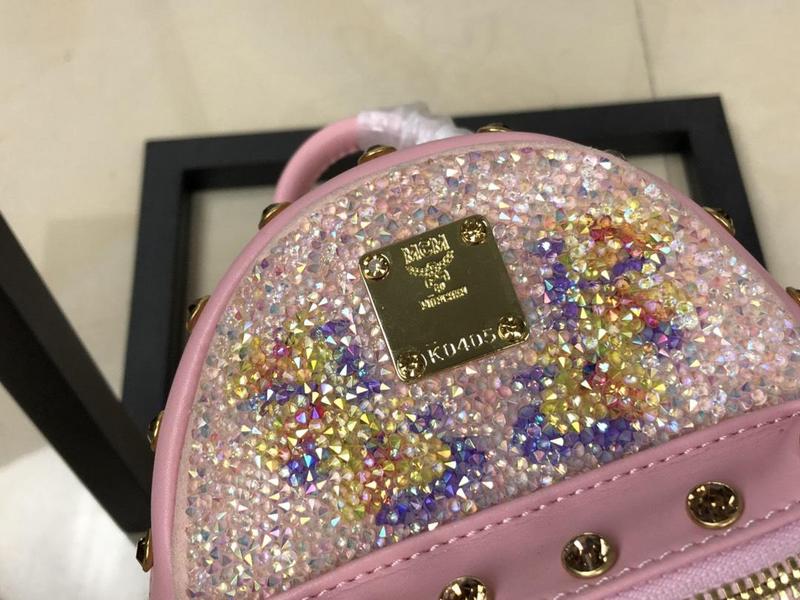 MCM Limited Edition: exclusive sale. Icing on the cake: cow skin + SWAROVSKI crystal decoration, extremely glamorous charm, extravagant and moving, in different angles can refract bright splendor, instantly improve temperament. Attractive appearance, super mini design, multi usage, slanting, hand carrying and double shoulders. Mini + trumpet single shoulder bag with YKK zipper bronze independent. Ultra Mini: (CM) 17x21x9 Mini Mini: (CM) 21x27x10