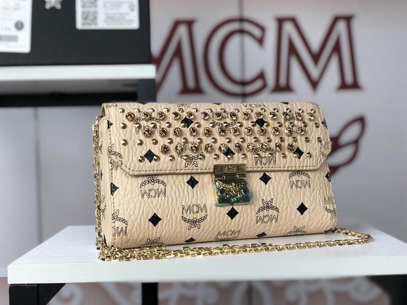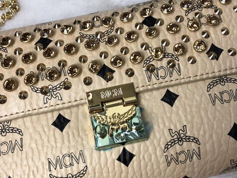 MCM rivet full Mille [flip flip bag] gorgeous transformation, decorated SWAROVSKI crystal and rivets provide a delicate background. With detachable chain slanting strap, hand held, YKK zipper, folding and folding cassia leaf button size: (CM) 23.5x13.5x5