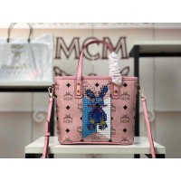 MCM: Rabbit nailed (Anya) shopping bag, the original single goods. Hand-held and slung shoulder single shoulder, adjustable dismantling shoulder strap, adding lovely new elements, decorated with lovely patterns, color small rivets, single layer zipper closed, YKK zipper, copper independent encoding size: wide and thick (CM) 20x17x9