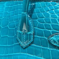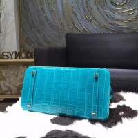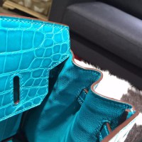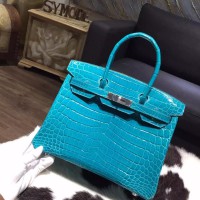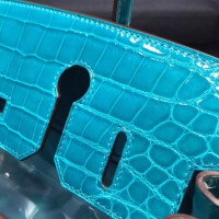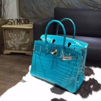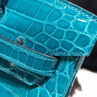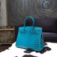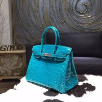 Best Quality Imitation Hermes Shiny Alligator Crocodile Birkin 30cm Palladium Hardware Handstitched, Blue Izmir 7W RS09137
