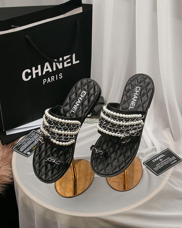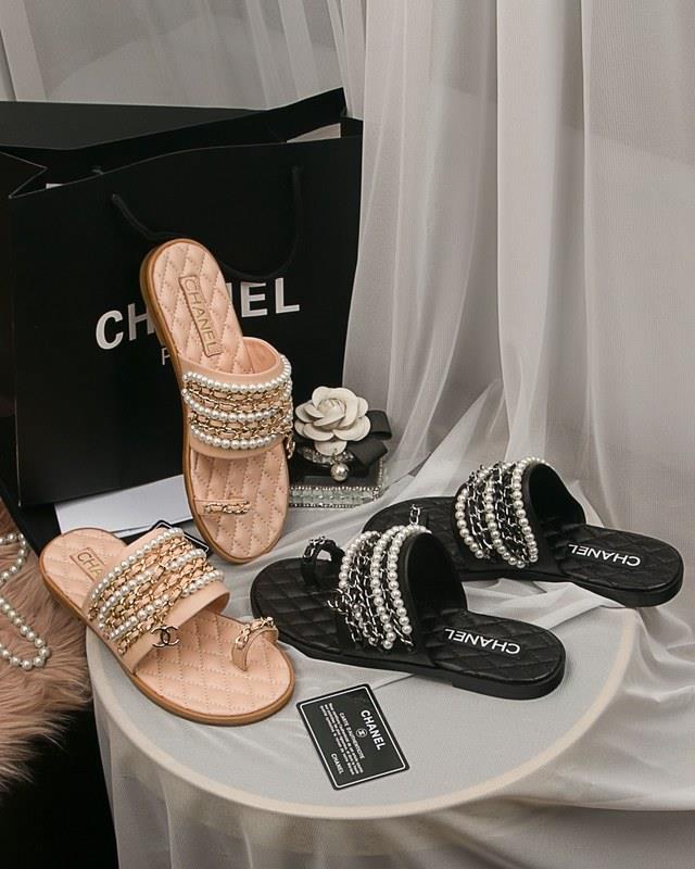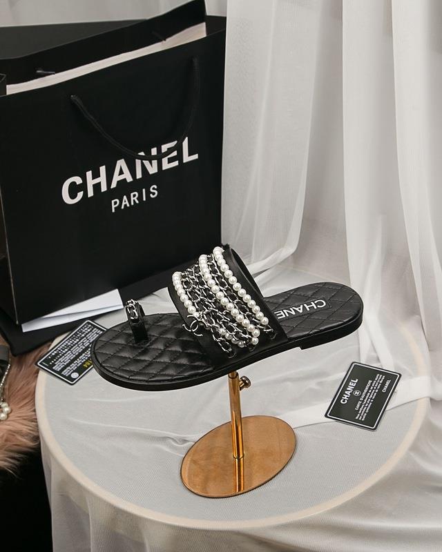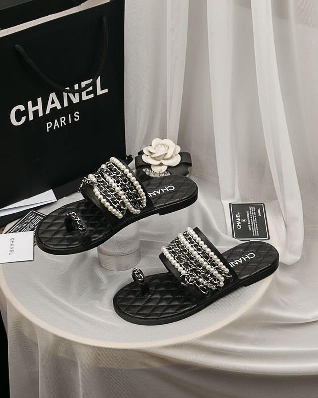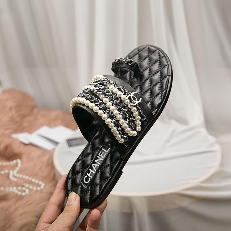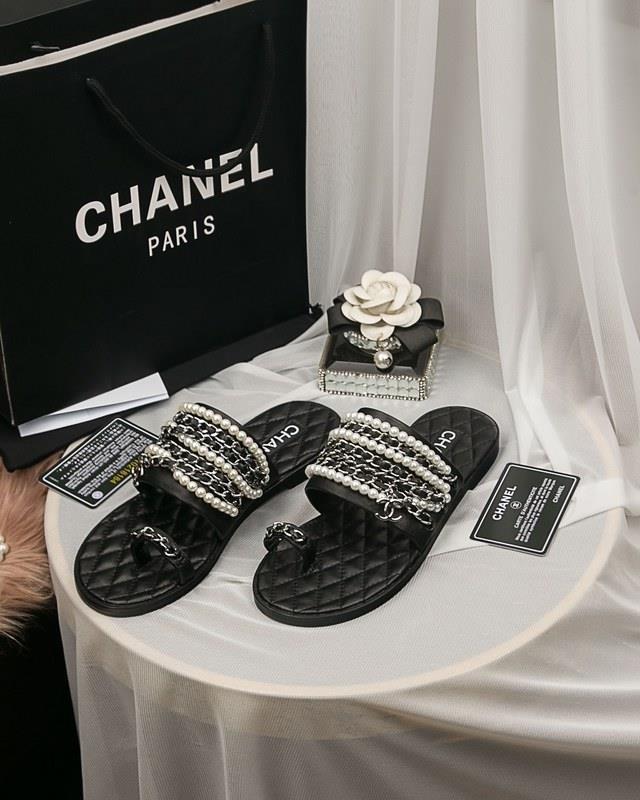 Chanel Women Slide Sandals Black CHS-214