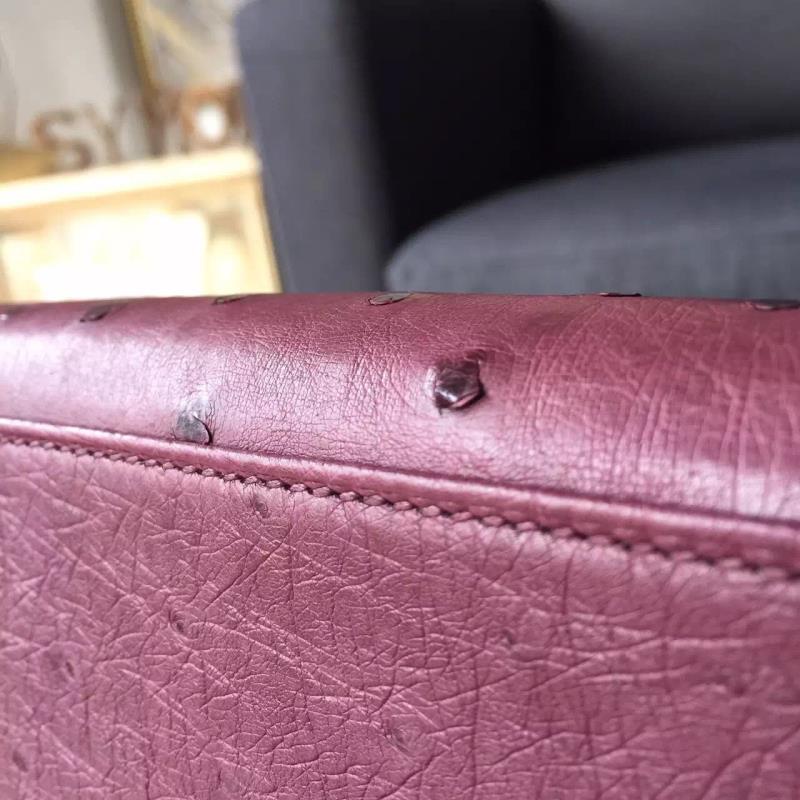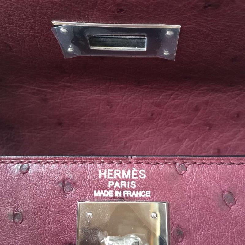 Comes with ostrich skin padlock and the two keys, dust bag, sales invoice, repair receipt, craftsman signature and year of make stamp, orange gift bag, and orange gift box with ribbon.