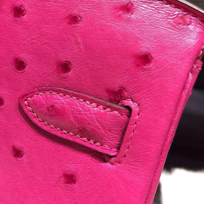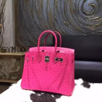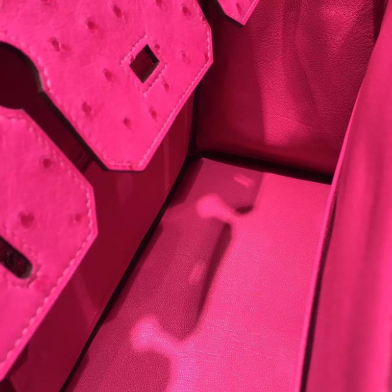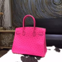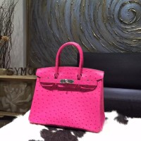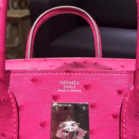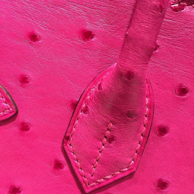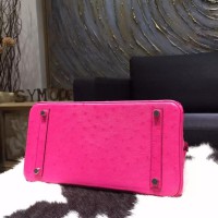 Hermes Autruche Ostrich Birkin 30cm Bag Handstitched Palladium Hardware Handstitched, Fuschia Pink 5J RS20506