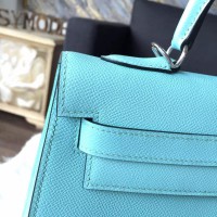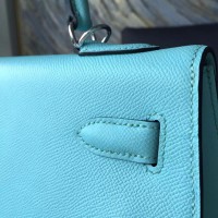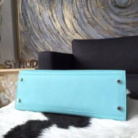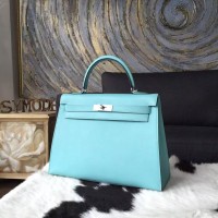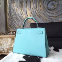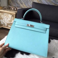 Hermes Kelly 32cm Bag Sellier Rigide Epsom Calfskin Palladium Hardware Handstitched, Blue Atoll 3P RS07222
