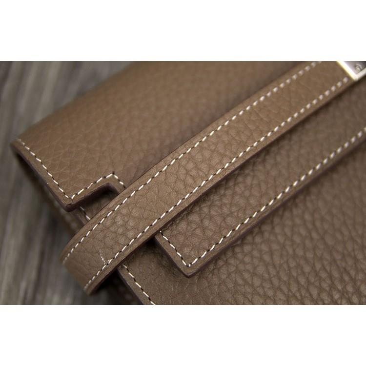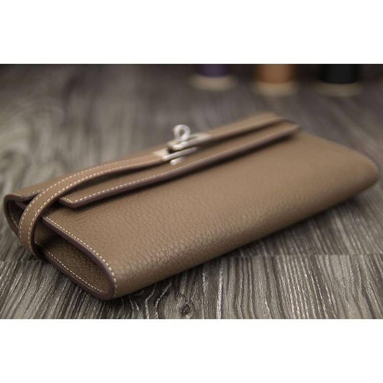 A wallet to be jealous about, it's inspired by the iconic Kelly Tote Bag. Made from top quality leather and handled with grace by the fashion brand's craftsman. It's made with plenty of room to store coins, cards and cash. It's so to-die-for that it made with a key to unlock the exterior closure. Anyone that knows a little bit of fashion will understand that it's a Hermes Kelly Wallet.