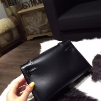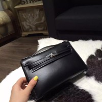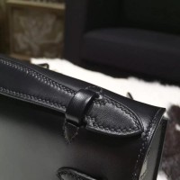 Replica Best Hermes Mini Kelly Pochette 22cm Box Calfskin Leather Handstitched, Noir RS08043