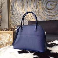 Replica Hermes Bolide 27cm Epsom Calfskin Leather Bag Palladium Hardware Handstitched, Blue Saphir CK73 RS06168